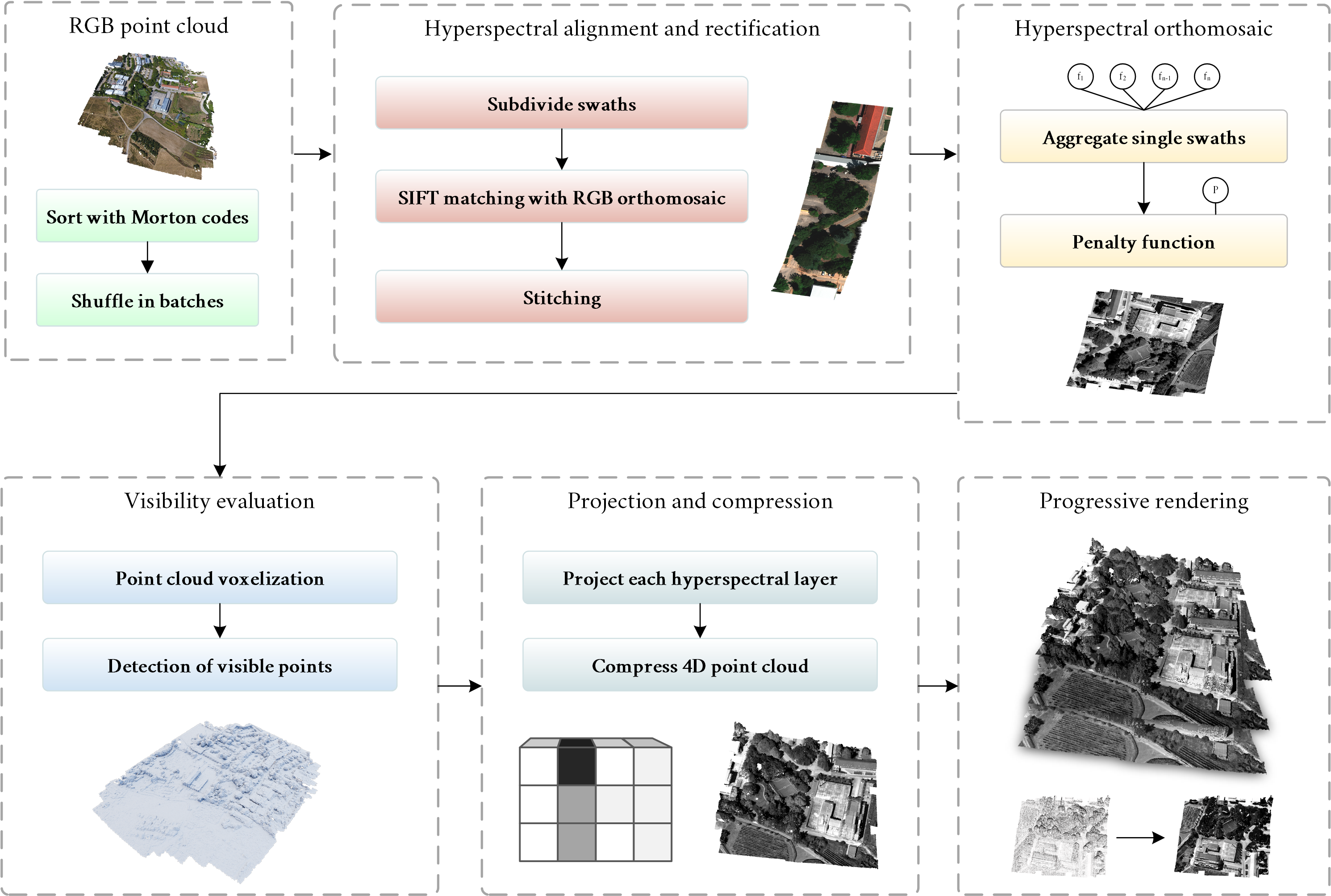 Generation of hyperspectral point clouds: Mapping, compression and rendering