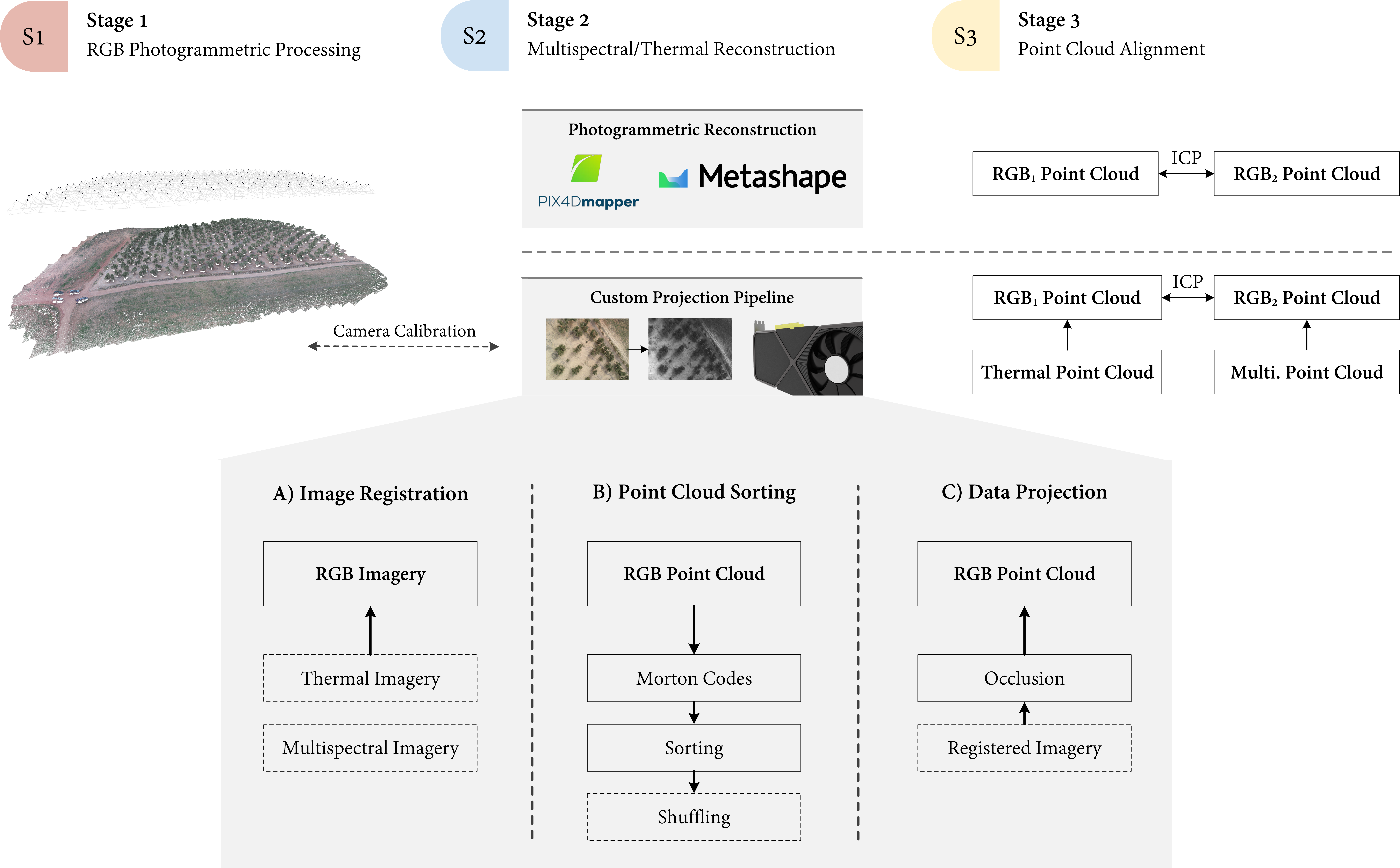 Recommended citation: López, A., Ogayar, C. J., Jurado, J. M., & Feito, F. R. (2023). Efficient generation of occlusion-aware multispectral and thermographic point clouds. Computers and Electronics in Agriculture, 207, 107712. https://doi.org/10.1016/j.compag.2023.107712.