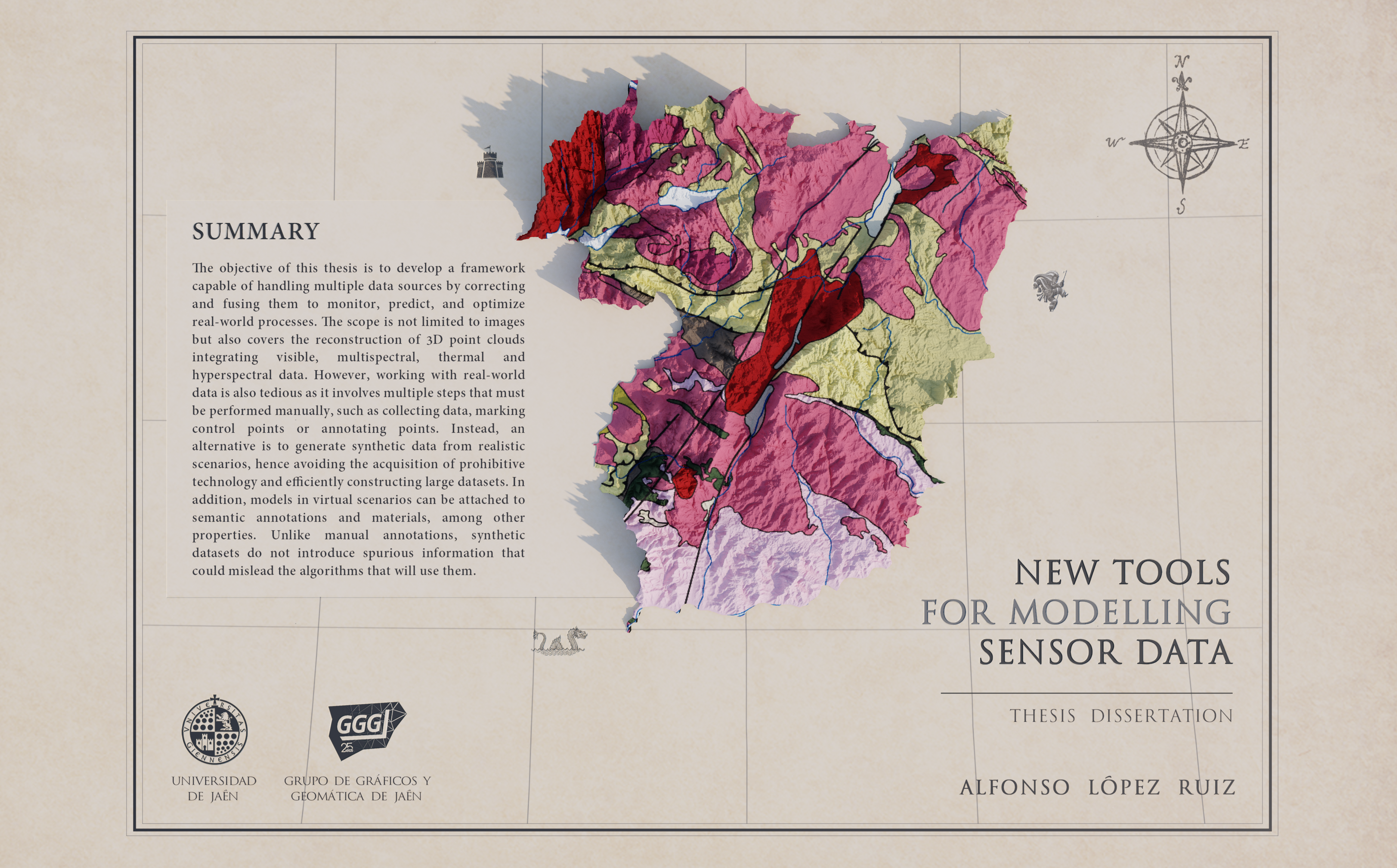 The objective of this thesis is to develop a framework capable of handling multiple data sources by correcting and fusing them to monitor, predict, and optimize real-world processes. The scope is not limited to images but also covers the reconstruction of 3D point clouds integrating visible, multispectral, thermal and hyperspectral data. However, working with real-world data is also tedious as it involves multiple steps that must be performed manually, such as collecting data, marking control points or annotating points. Instead, an alternative is to generate synthetic data from realistic scenarios, hence avoiding the acquisition of prohibitive technology and efficiently constructing large datasets. In addition, models in virtual scenarios can be attached to semantic annotations and materials, among other properties. Unlike manual annotations, synthetic datasets do not introduce spurious information that could mislead the algorithms that will use them.