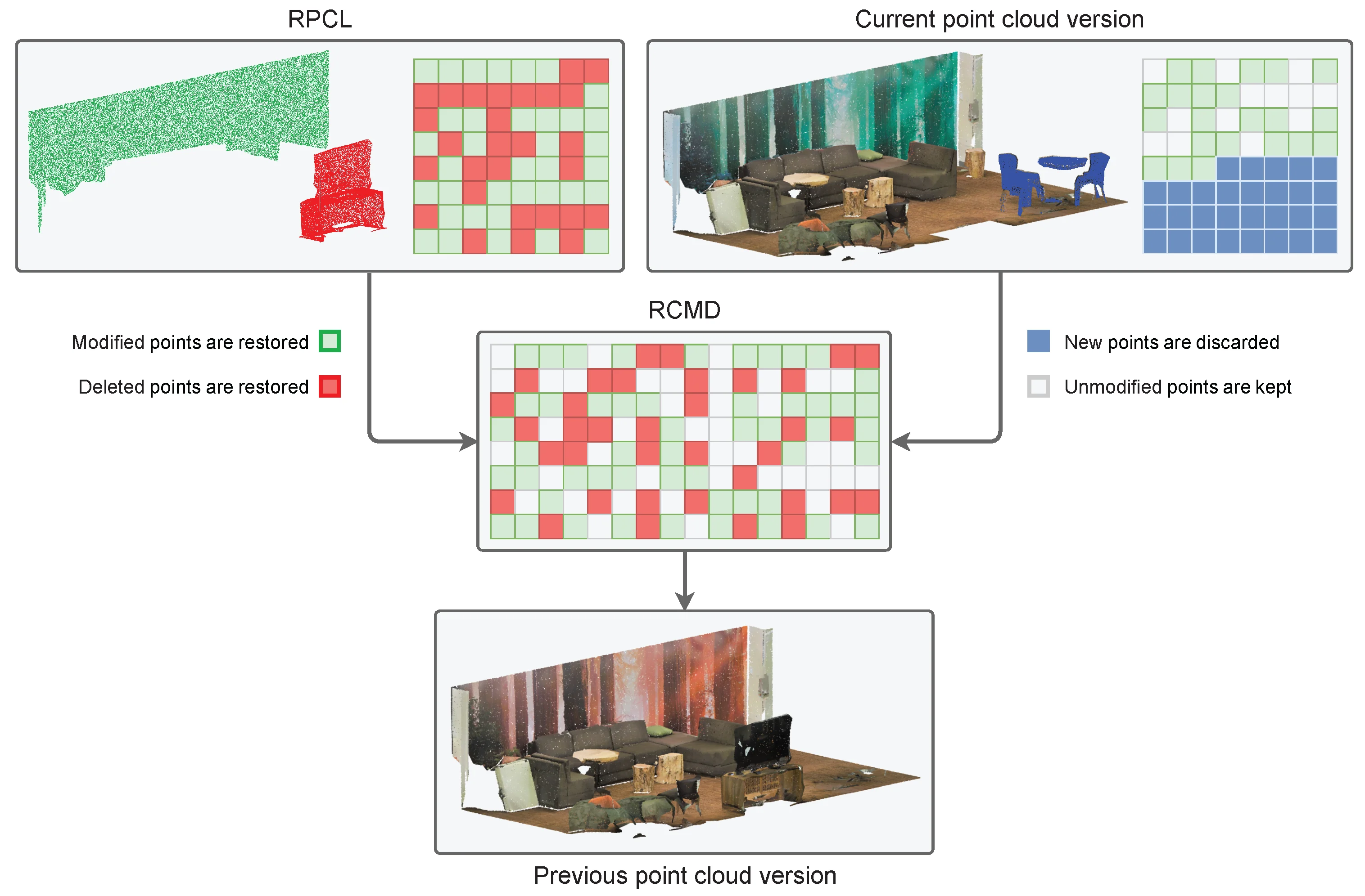 This paper presents a novel version control system for point clouds, which allows the complete editing history of a dataset to be stored. For each intermediate version, this system stores only the information that changes with respect to the previous one, which is compressed using a new strategy based on several algorithms. It allows undo/redo functionality in memory, which serves to optimize the operation of the version control system. It can also manage changes produced from third-party applications, which makes it ideal to be integrated into typical Computer-Aided Design workflows. In addition to automated management of incremental versions of point cloud datasets, the proposed system has a much lower storage footprint than the manual backup approach for most common point cloud workflows, which is essential when working with LiDAR (Light Detection and Ranging) data in the context of spatial big data.